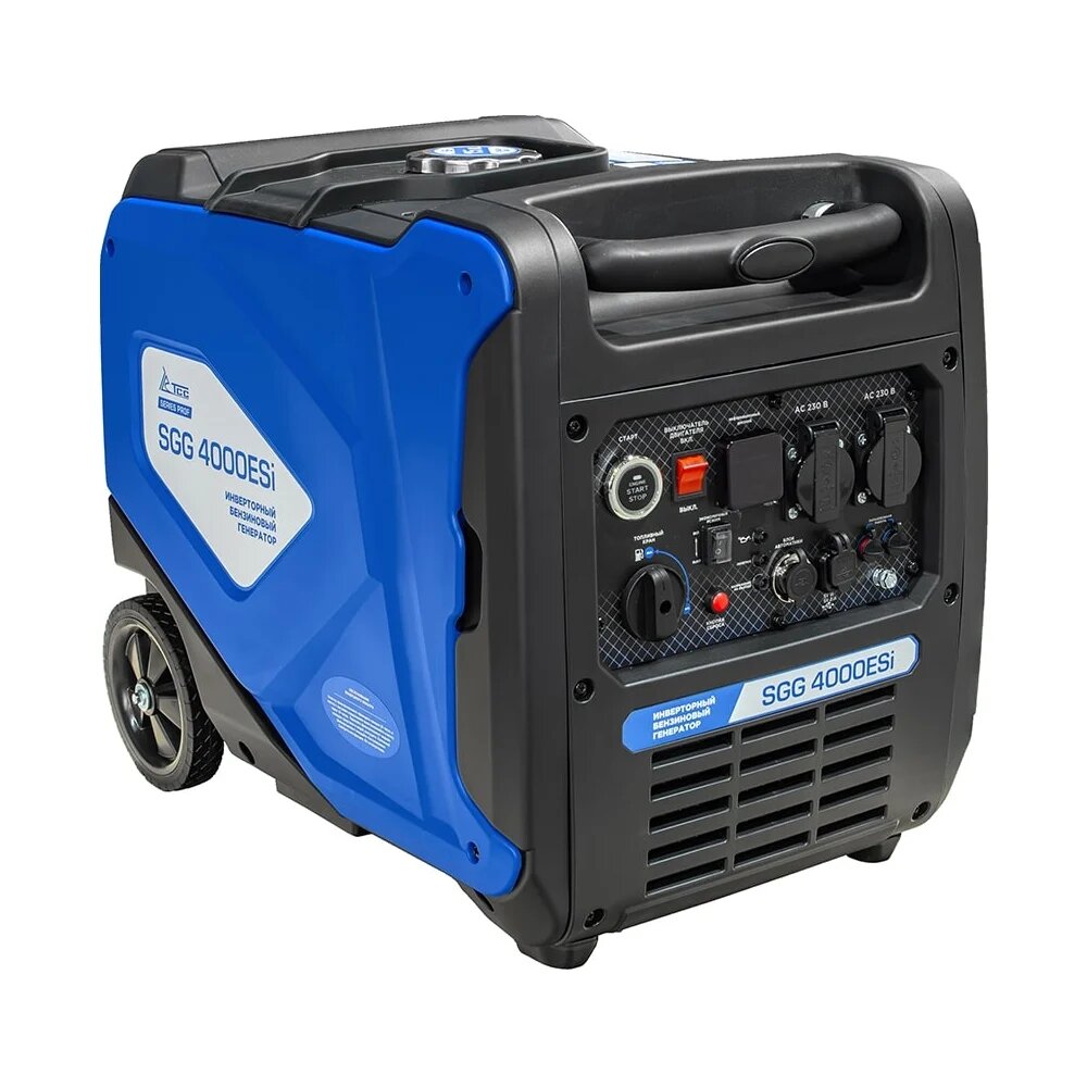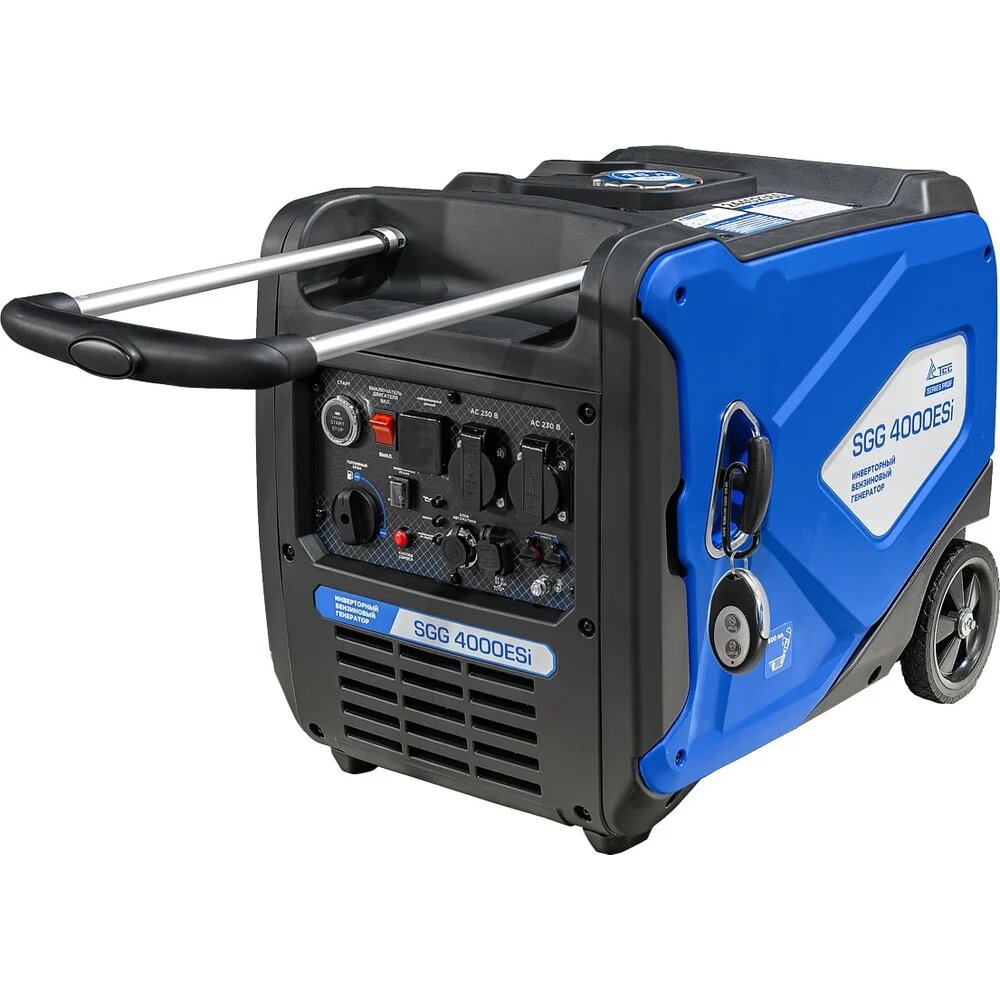 Бензогенератор инверторный SGG 4000ESi в шумопоглащающем кожухe, с электростартом, режимом экономичного расхода топлива - предназначен для подключения к нему потребителей тока общей максимальной мощностью до 3,7 кВт. Переносной компактный инверторный генератор предназначен для питания электроприборов на загородном участке, в походе, на рыбалке.