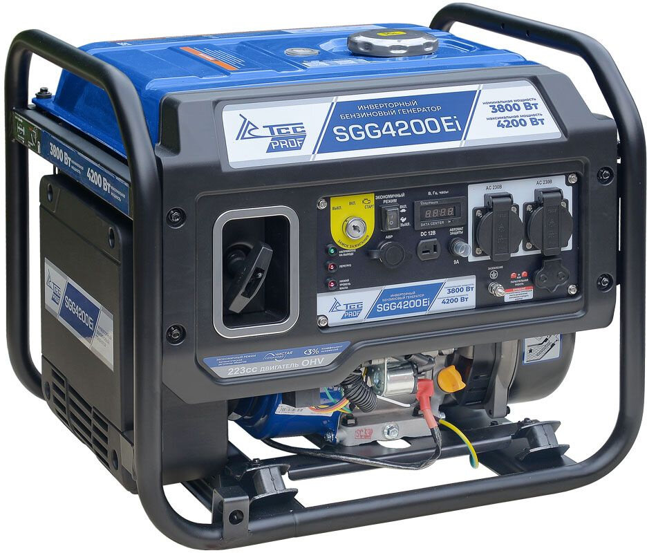 Бензогенератор инверторный SGG 4200Ei с электростартом и разъемом для подключения блока автоматики, вырабатывает электричество с высокой точностью частоты и напряжения.