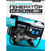 Купить Генератор варяг БГ-6500, бензиновый, мощность 5,5 кВт, 2 розетки, 230 В, 389 см3 с доставкой по всей России.