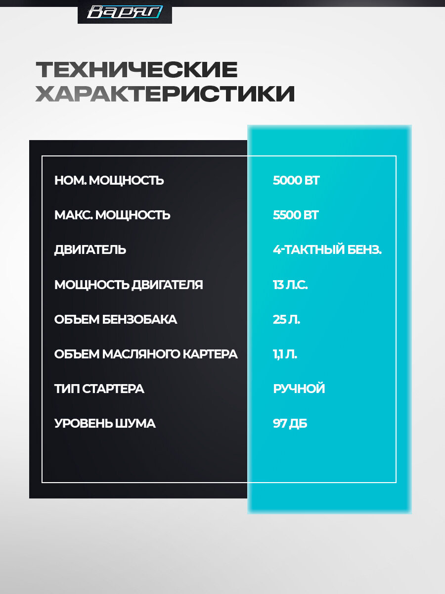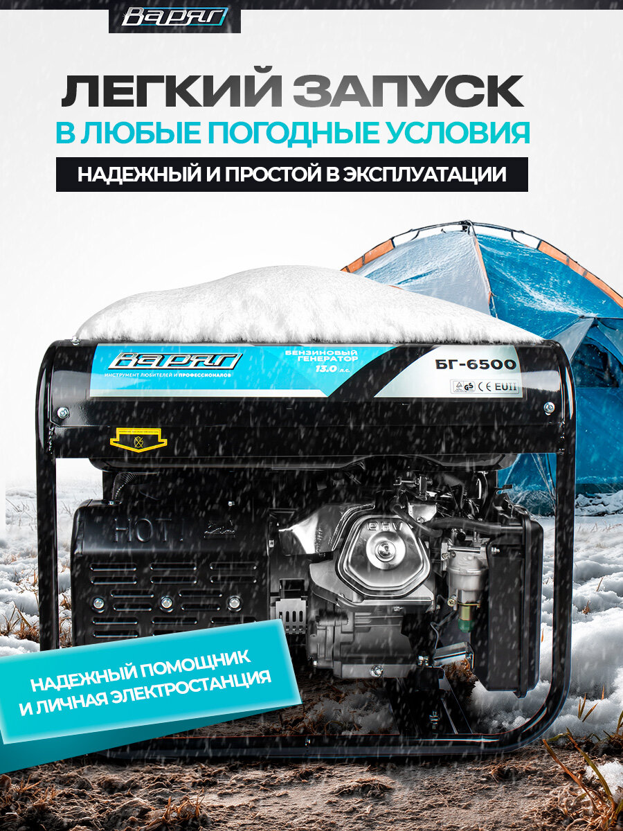 Генератор варяг БГ-6500, бензиновый, мощность 5,5 кВт, 2 розетки, 230 В, 389 см3: сравнение цен, характеристики, фото, актуальное наличие и цены.