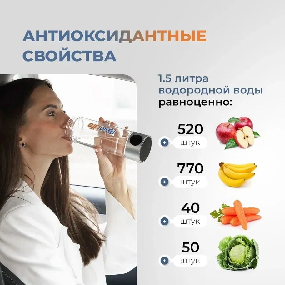Встречайте инновационный девайс AkvaLife Lite, который изменит ваш взгляд на качество и вкус воды – водородный генератор, предназначенный для создания молекулярного водорода в домашних условиях. Этот портативный прибор, легко помещающийся в спортивной сумке, станет идеальным спутником в ваших путешествиях. Теперь вы сможете обогатить питьевую водицу молекулами водорода, что существенно улучшит ее свойства и вкус. Бытовой прибор насыщает жидкость антиоксидантными свойствами. Она восстанавливает организм после физических нагрузок, занятий спортом и фитнесом, поддерживает активный образ жизни, ЗОЖ. Акваприбор положительно воздействует как на детей, так и взрослых – женщин и мужчин. Данный прибор для приготовления минеральной воды, на одном заряде может приготовить более 10 циклов. Представьте, как вы наполняете резервуар для воды, добавляете жидкости, и через несколько мгновений наслаждаетесь чистейшей водичкой, насыщенной полезными молекулами. Этот уникальный активатор не только обеспечивает высокое качество напитков, но и способствует укреплению иммунной системы. Развитая система ионизации позволяет озонатору быстро преобразовать обычную воду в целебный напиток с низким окислительно-восстановительным потенциалом (ОВП), приближающим его к природным источникам, например, роднику. Корпус бутылочки выполнен из стекла. Портативная бутылочка имеет металлическую крышку, надежно защищает содержимое, гарантируя, что вы всегда будете пользоваться свежей и насыщенной водородом водой. Этот удобный и стильный ионизатор легко использовать и обслуживать, а его компактный размер делает возможным его применение в любом месте – дома, в офисе или на природе. Переносная бутылочка станет лучшим подарком для вашей семьи и близких. Не упустите шанс испытать на себе все преимущества такой чудесной жидкости. Попробуйте водородный генератор и ощутите мощь молекул, улучшающих качество вашей жизни. Сделайте первый шаг к здоровой жизни – приобретите этот чудо-прибор прямо сейчас!