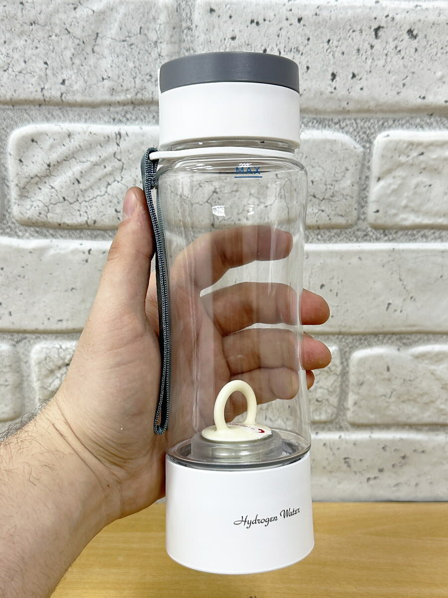 - Удобно брать на работу, в поездки. Портативный минигенератор водорода компактен, имеет простое и интуитивно понятное управление, бутылочка весит всего 300 г. В отличие от генераторов типа кувшин (чайник) или кружка, стакан поместится практически в любую сумку - формат как спортивная бутылка. Для удобной переноски в верхней части предусмотрена откидная ручка.