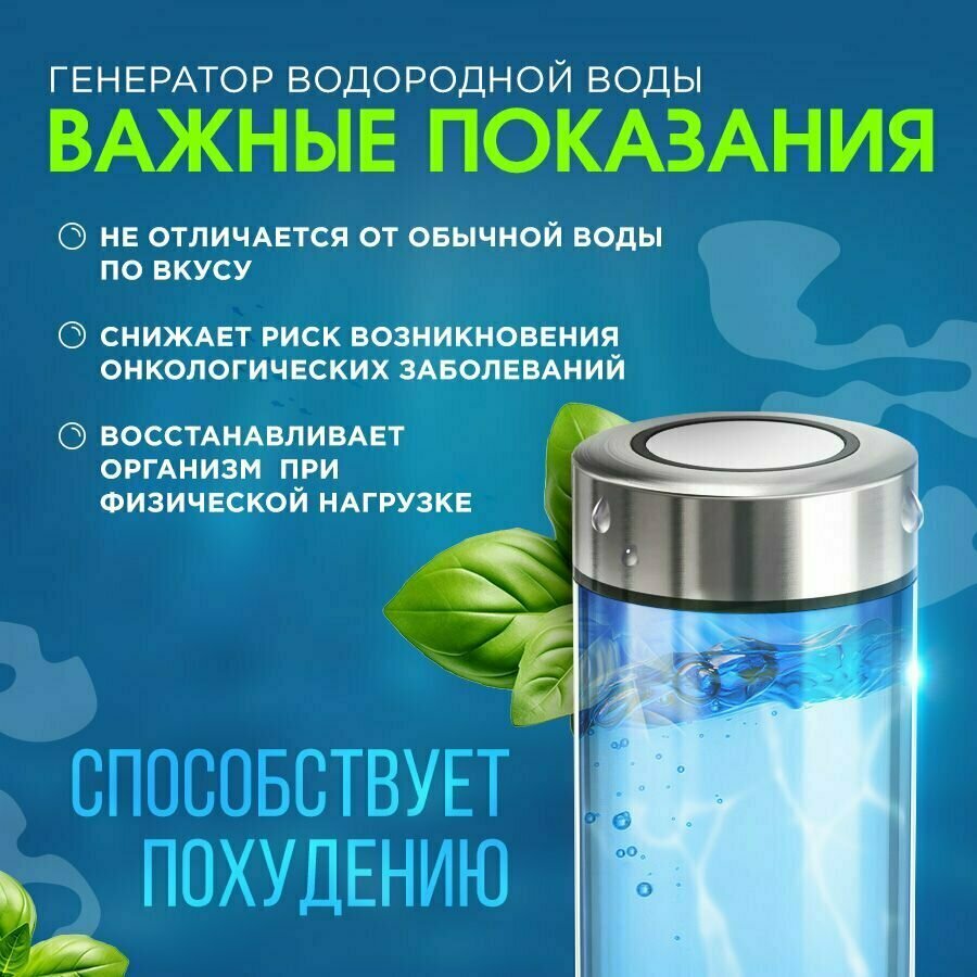 Генератор водородной воды H2LIFE GLASS портативный ионизатор для дома и спорта
