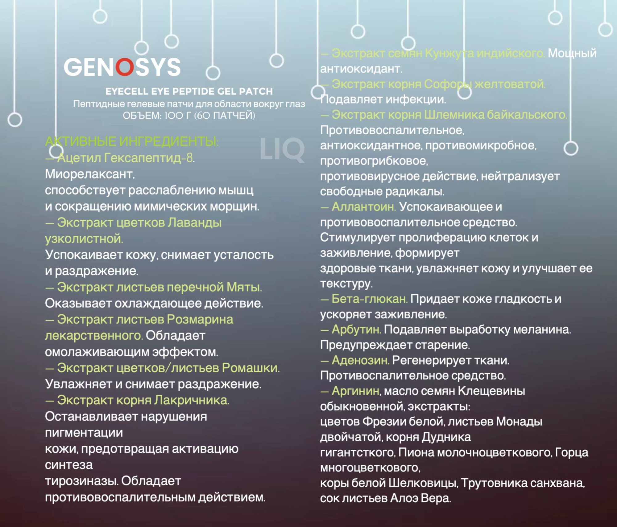 Genosys EYECELL Eye Peptide Gel Patch Пептидные гелевые патчи для области вокруг глаз,100 г (60 патчей): сравнение цен, характеристики, фото, актуальное наличие и цены.