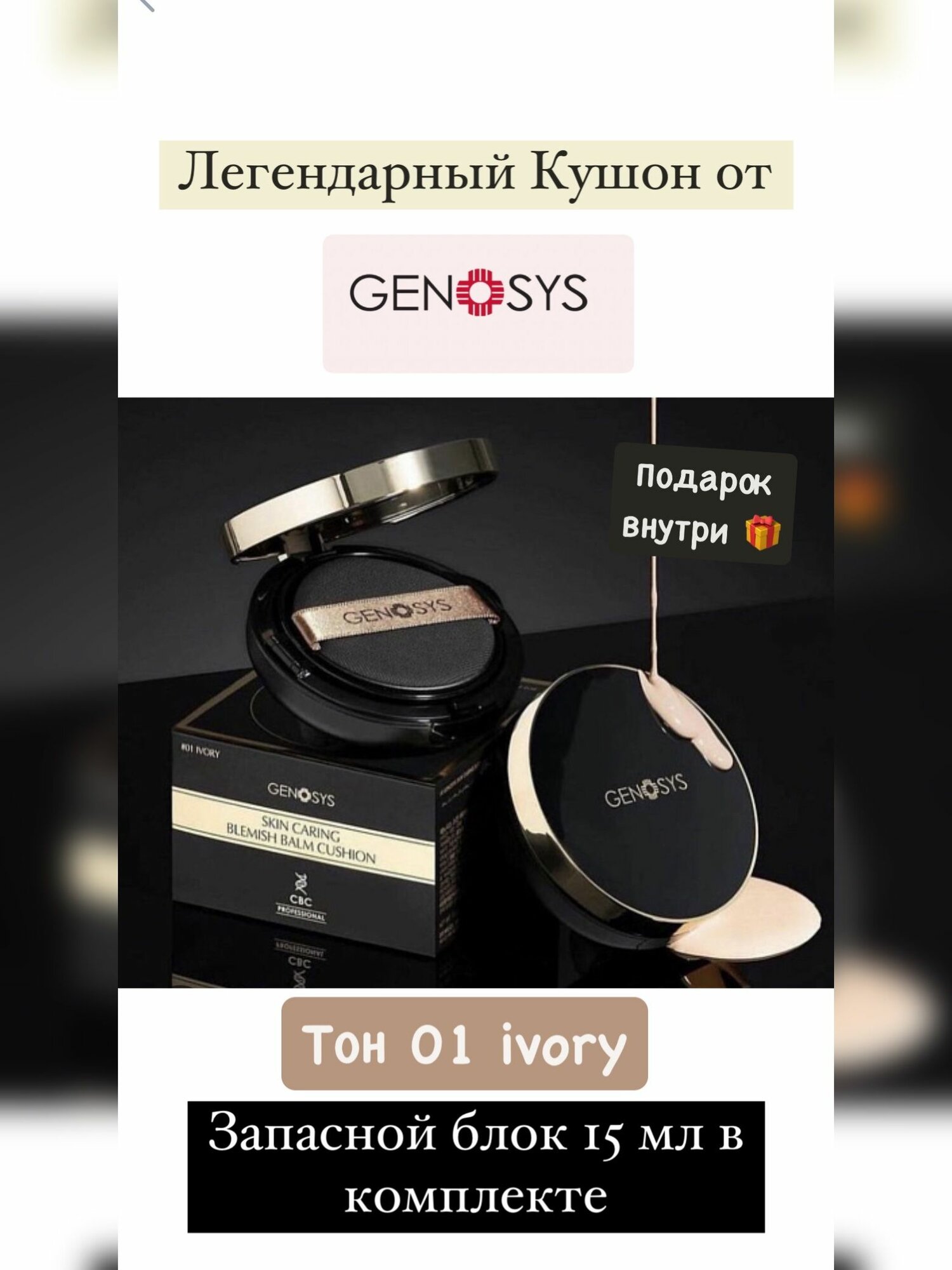 Genosys Skin Caring Blemish Balm Cushion Ухаживающий BB-кушон с тонирующим эффектом (тон 01 Ivory) Полноценный тонирующий BB флюид с SPF 50 ,30 ml: сравнение цен, характеристики, фото, актуальное наличие и цены.