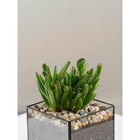 Geo Glass: Суккулент живой , стеклянное кашпо , крассула Хоббит 20 см