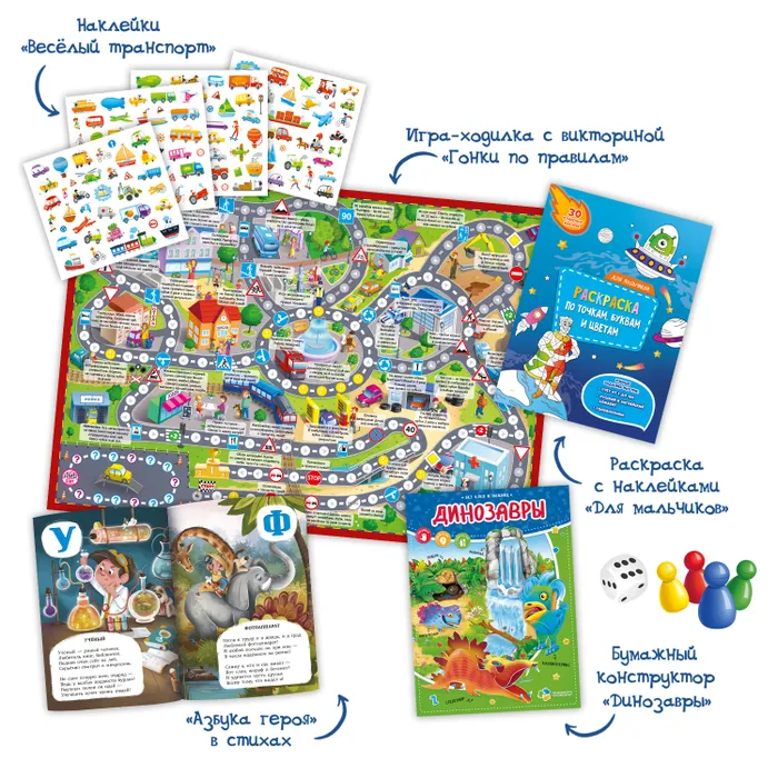 ГеоДом Большой подарок Для мальчика Азбука+ Раскраска+Наклейки+Игра-ходилка+Конструктор бумажный.: сравнение цен, характеристики, фото, актуальное наличие и цены.