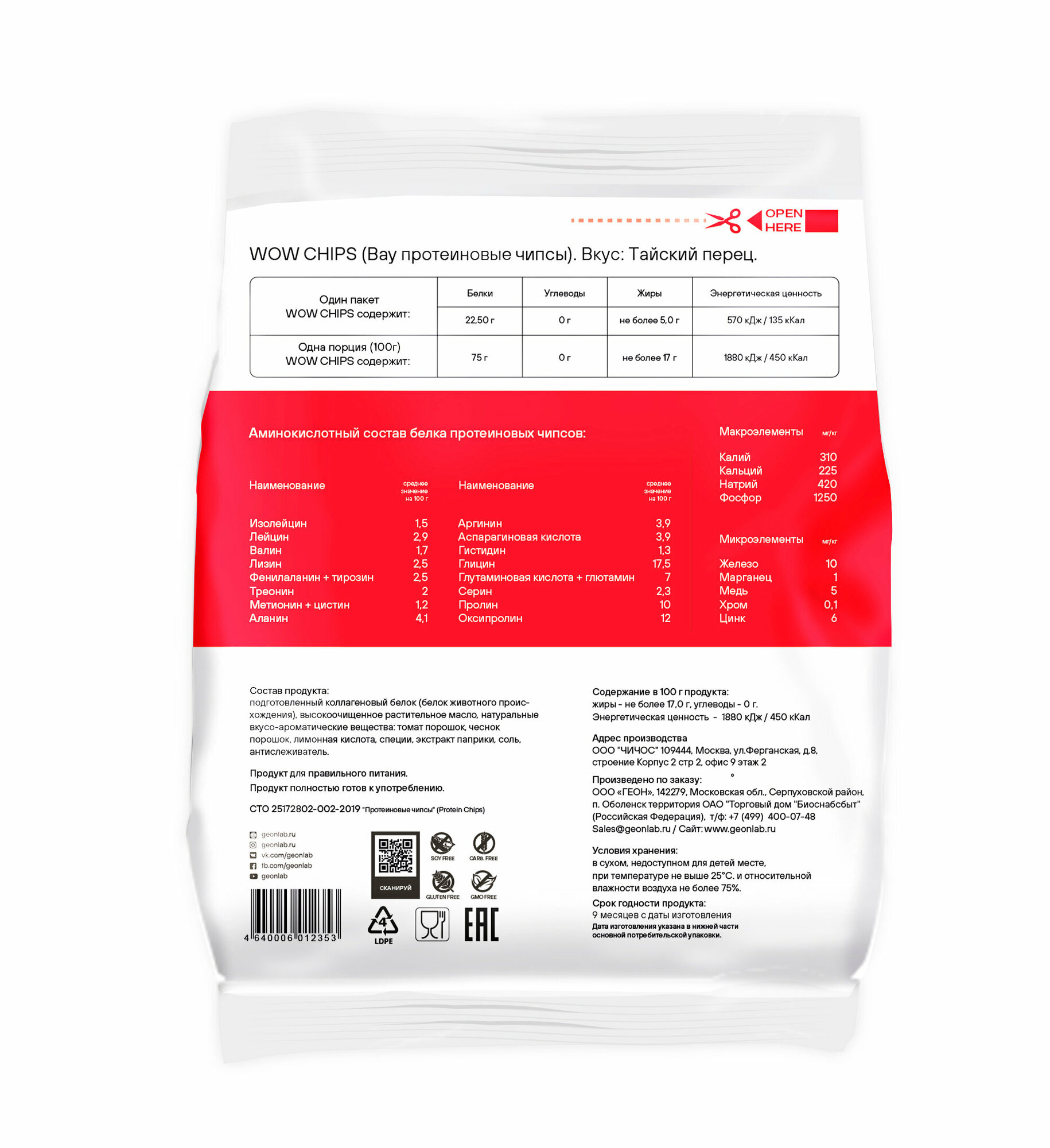 Купить GEON Wow Chips — протеиновые чипсы со сладким тайским перцем, 30г, 10 шт с доставкой по всей России.
