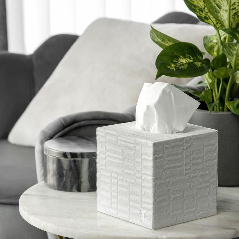 Коробка для салфеток квадратная Георг 14х14х14,5 см. Состав: поливинилхлорид-полиуретан. Коробки для салфеток – удобный и практичный аксессуар для ежедневного использования на кухне или в столовой. Модель Георг изготовлена из прочного и практичного полиуретана. Она долго прослужит, ее легко протереть и отмыть от пятен средством для мытья посуды. Коробка кубической формы украсит интерьер современной кухни. Ее лаконичная геометричность и рельефная фактура поверхности – геометрический орнамент с эффектом 3D – ода авангардному направлению в искусстве начала двадцатых годов прошлого века. Коробки представлены в двух цветах – пепельно-сером и белом. Они составляют ансамбль с подставками под горячее Георг.