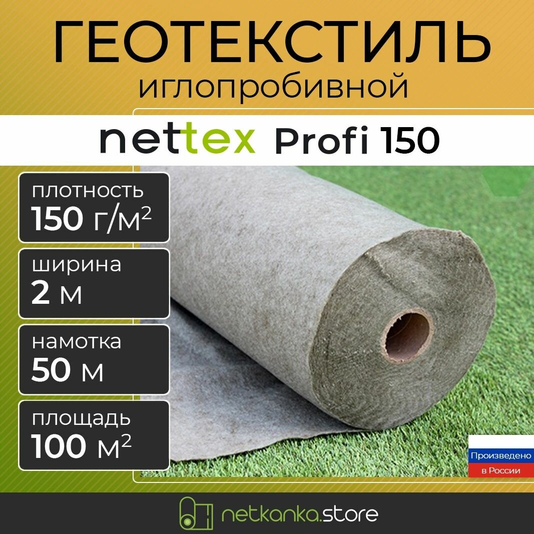 Геотекстиль 150 иглопробивной NETTEX Profi (2.0м*50м площадь 100м2) садовый, строительный, ландшафтный, для садовых дорожек, укрывной материал, под брусчатку, под щебень, для дренажа: сравнение цен, характеристики, фото, актуальное наличие и цены.