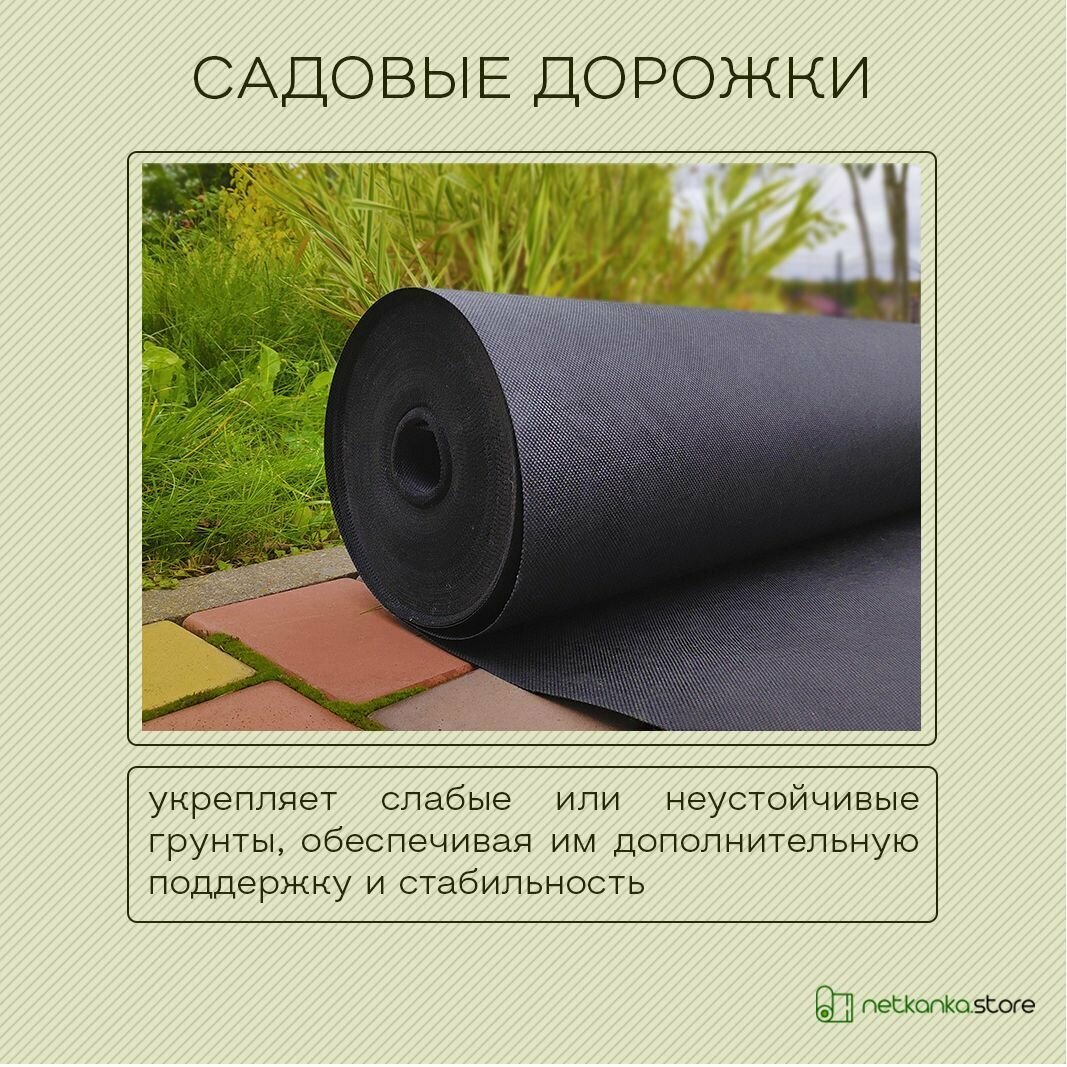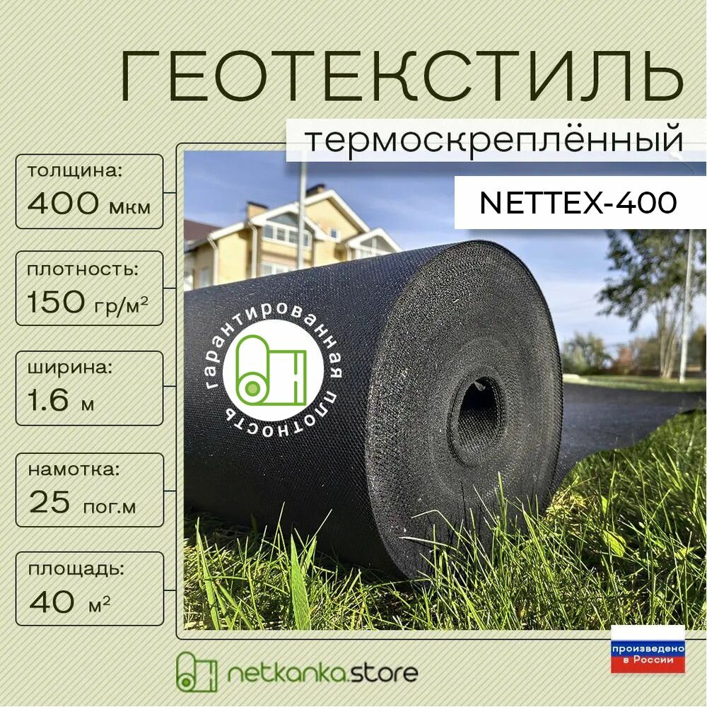 Геотекстиль 400 микрон черный NETTEX-400 150 г/м2 (1,6м*25м, площадь 40м2) для садовых дорожек, для парковок, строительный, против сорняков, под брусчатку, от прорастания корней: сравнение цен, характеристики, фото, актуальное наличие и цены.