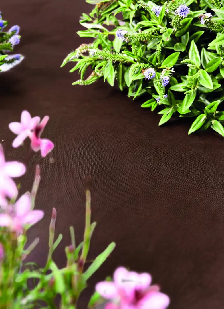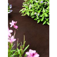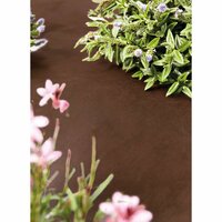 геотекстиль изготовлен из полипропилена, который не выделяет вредных веществ при контакте с водой и не наносит ущерба окружающей среде; полотно коричневого цвета оптимально для применения в ландшафтном дизайне; сверху геотекстиль можно присыпать гравием или сосновой корой; срок использования материала для средней полосы РФ — два сезона.