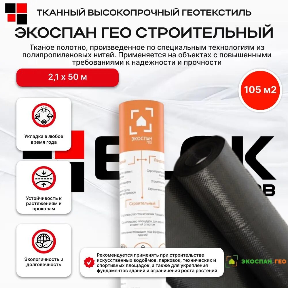 Купить Геотекстиль Экоспан Гео Строительный 2,1х50м 105м2 с доставкой по всей России. Геотекстиль Экоспан Гео Строительный 2,1х50м 105м2: сравнение цен, характеристики, фото, актуальное наличие и цены.