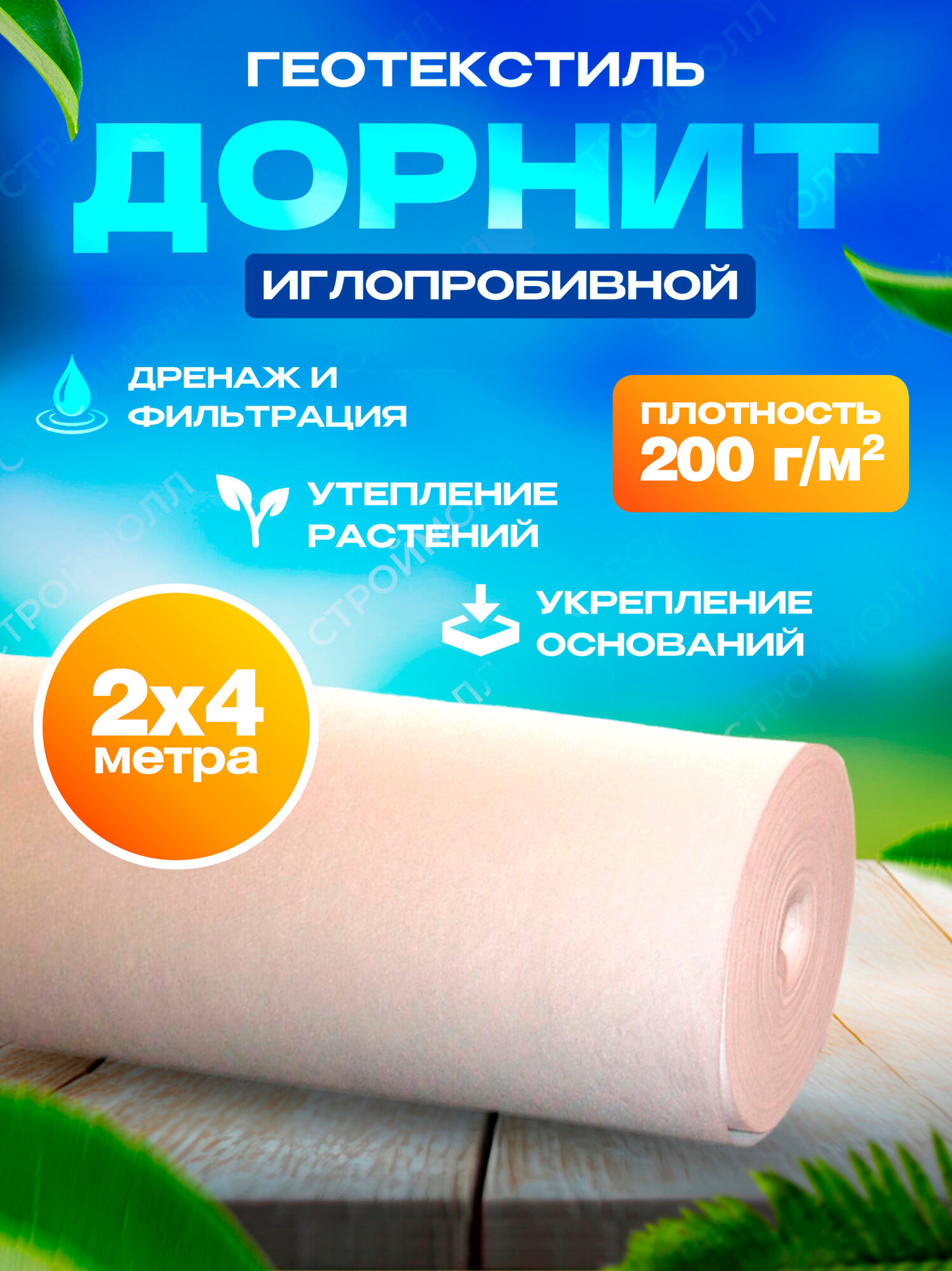 Геотекстиль Дорнит TECHNOPLAST, нетканый, иглопробивный, полиэфир, 200 г/м², 2 х 4 м: сравнение цен, характеристики, фото, актуальное наличие и цены.