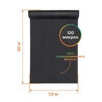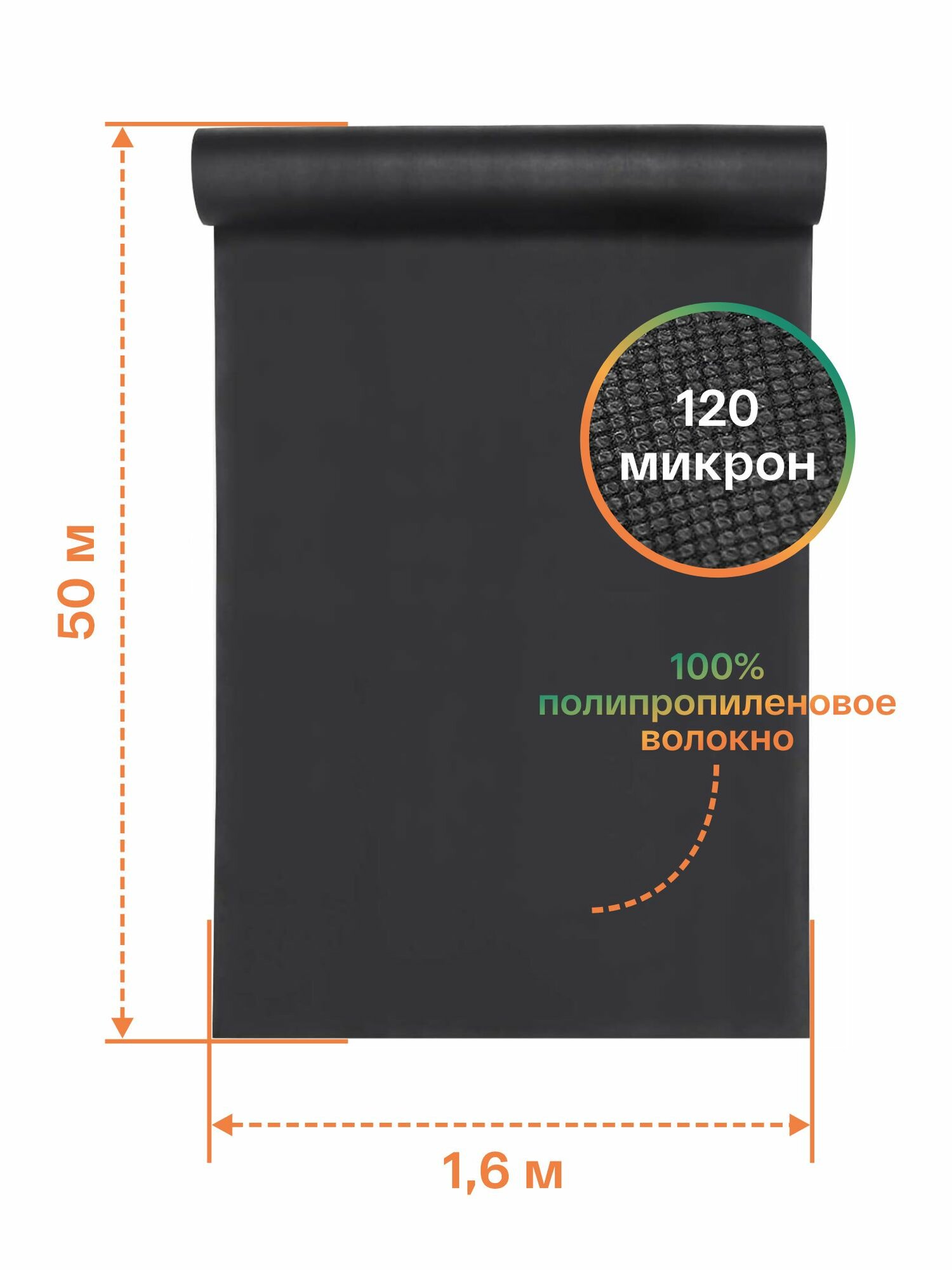 Геотекстиль садовый, 120 микрон, 1,6х50 м, чёрный, от сорняков, для грядок, для дорожек и ландшафтных работ