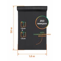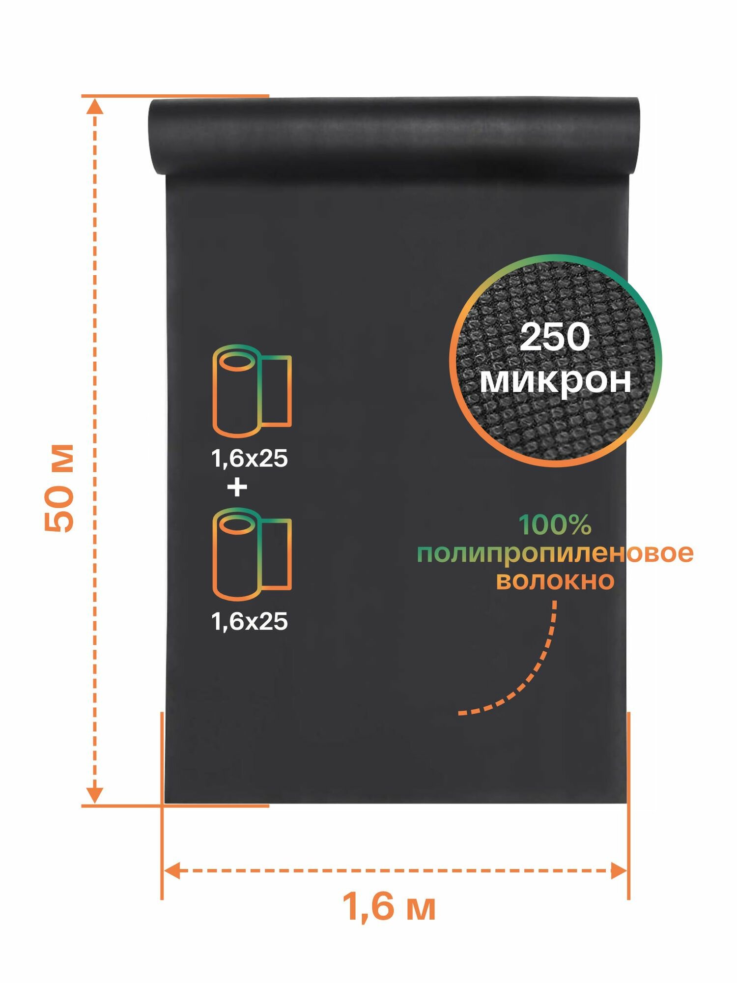 Геотекстиль садовый, 250 микрон, 1,6х50 м, чёрный, от сорняков, для грядок, для дорожек и ландшафтных работ: сравнение цен, характеристики, фото, актуальное наличие и цены.