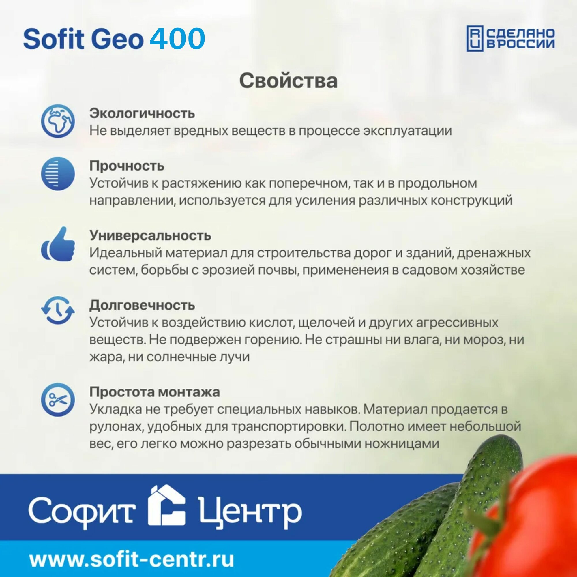 Геотекстиль Sofit GEO 400 (20 кв. м.) повышенной прочности садовый и строительный: сравнение цен, характеристики, фото, актуальное наличие и цены.