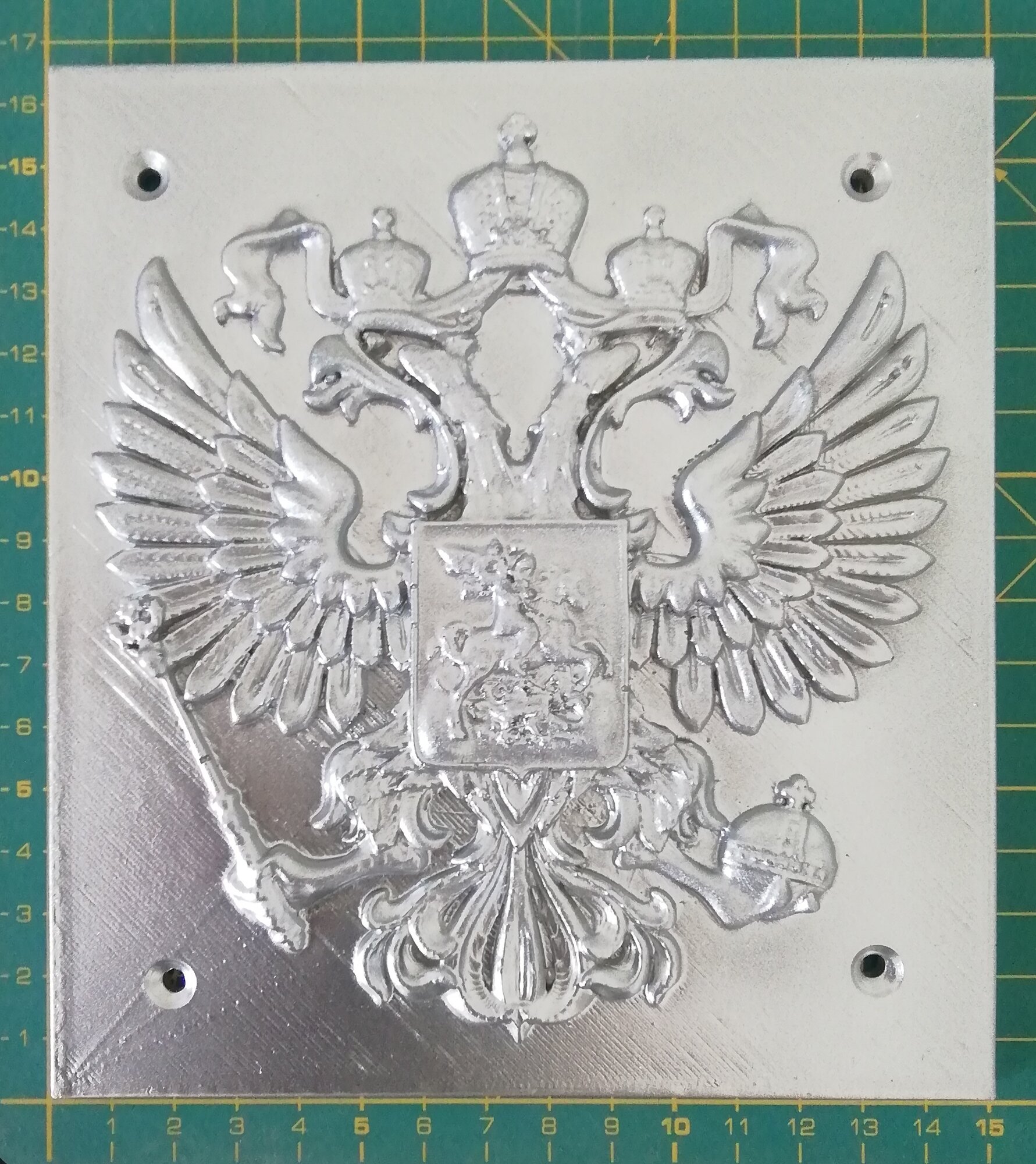 Купить Герб России на пограничный столб, ширина 15см, пластик, серебристый металлик с доставкой по всей России.