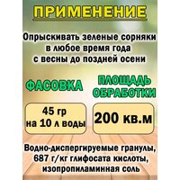 Упаковка содержит 45 грамм гербицида, который расфасован в пакеты. В комплекте идет 3 упаковки.