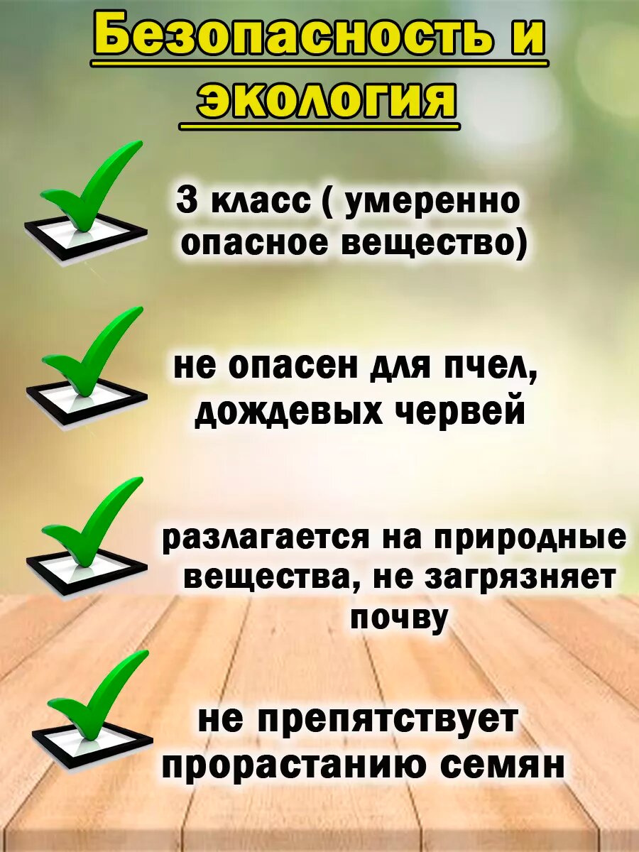 Упаковка содержит 45 грамм гербицида, что достаточно для обработки 100 квадратных метров.