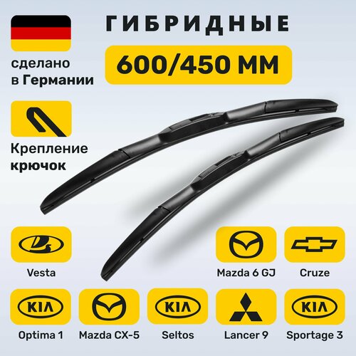 Гибридные щетки стеклоочистителя 600 мм и 450 мм – это всесезонные дворники с удобным легким креплением крючок (hook, j-hook) служат более 3 лет. Набор щеток немецкой компании Zekkert производится именно в Германии. Качество, проверенное Российским потребителем и получившее огромное доверие за последние годы. Трущее лезвие не резиновое, а изготовлено из 100% натурального каучука с графитовым покрытием. Благодаря каучуку, долговечному и морозостойкому материалу исключено появление наледи на поверхности, что особенно актуально при эксплуатации автомобиля зимой. Качественное прижатие к стеклу, по всей длине и лучшую аэродинамику обеспечивает установленная внутри них металлическая пластина (изготовлена из высококачественной углеродистой стали SPCC (Япония), это гарантия отличного качества чистки даже в условиях плохой погоды. Снижается сопротивление воздуху, уменьшены шумы при работе, даже при сухом ходе. Наши универсальные зимние и летние щетки в демисезон для авто обладают специальными свойствами, позволяющими эффективно очищать лобовое стекло машины от воды, грязи, снега и льда. Гибридные модели автощеток 60 на 45 – аксессуар, который станет отличным решением для автомобиля во время демисезонного использования, так как они сочетают в себе лучшие качества как каркасных, так и бескаркасных щеток и обеспечивают идеальное прилегание, хороший уровень чистки, а также равномерное и бесшумное скольжение по лобовому стеклу, не скрипят, не оставляют разводов, морозостойкие. Дворники автомобильные 60/45 - отличный подарок автовладельцу из категории автоаксессуары, практичный презент на любой праздник мужу, папе, любимому, брату.