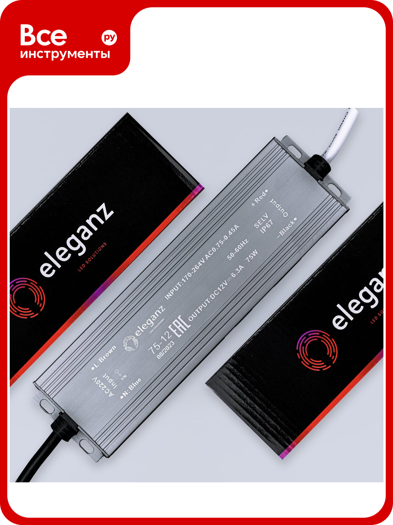 Блок питания Eleganz 12V 75W герметичный IP67 1119: сравнение цен, характеристики, фото, актуальное наличие и цены.