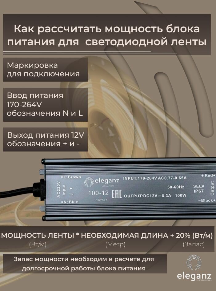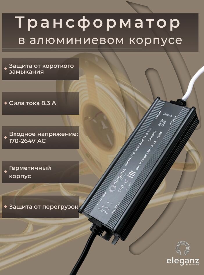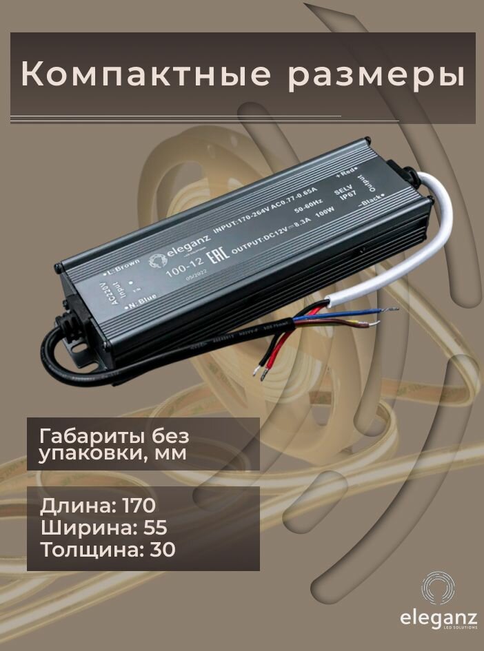 Блок питания для светодиодной ленты 12V «Eleganz 100W», IP67 1шт.: сравнение цен, характеристики, фото, актуальное наличие и цены.