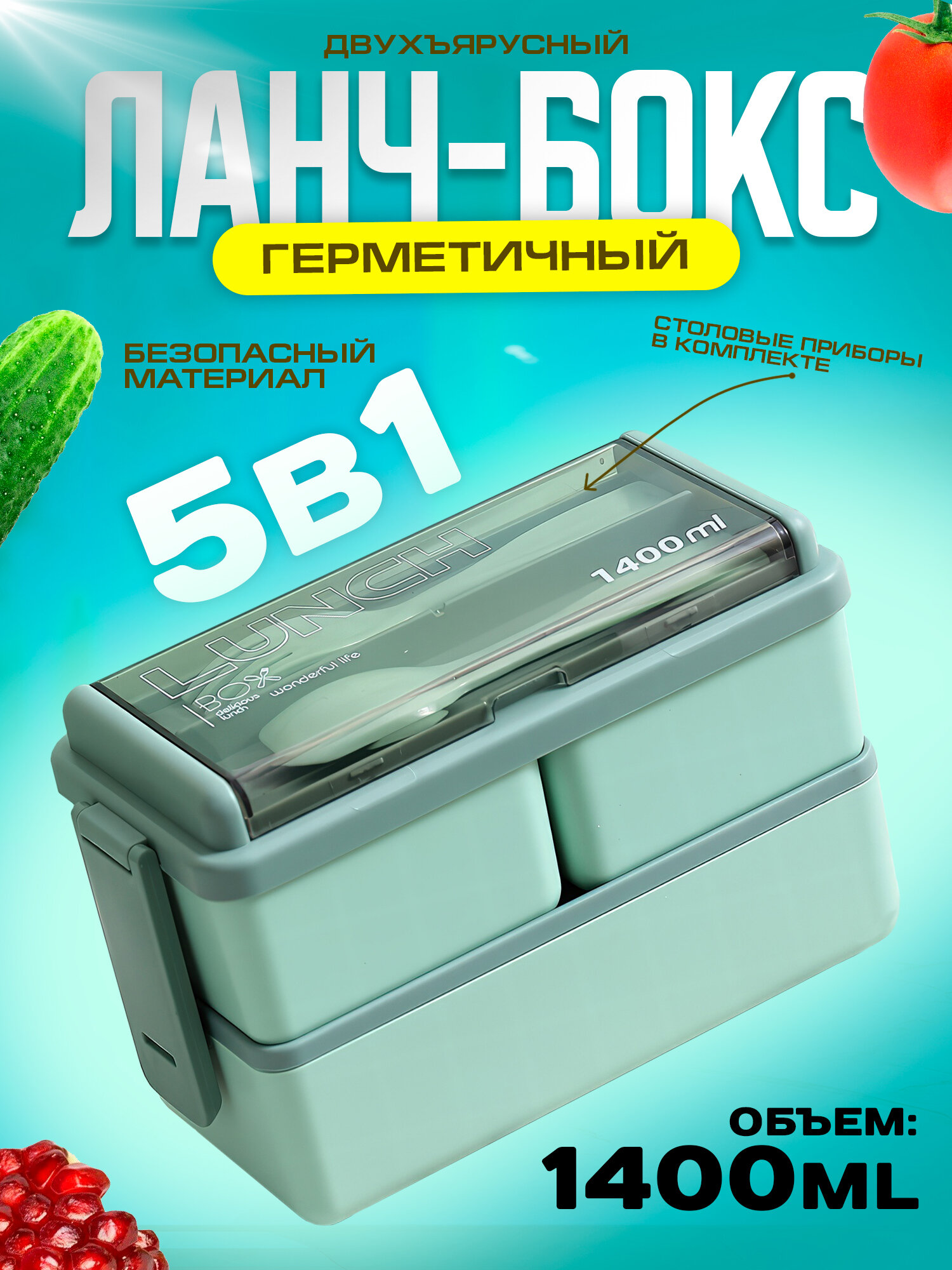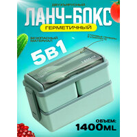Герметичный пластиковый ланч-бокс с 3 отсеками 1400мл. (зеленый): сравнение цен, характеристики, фото, актуальное наличие и цены.