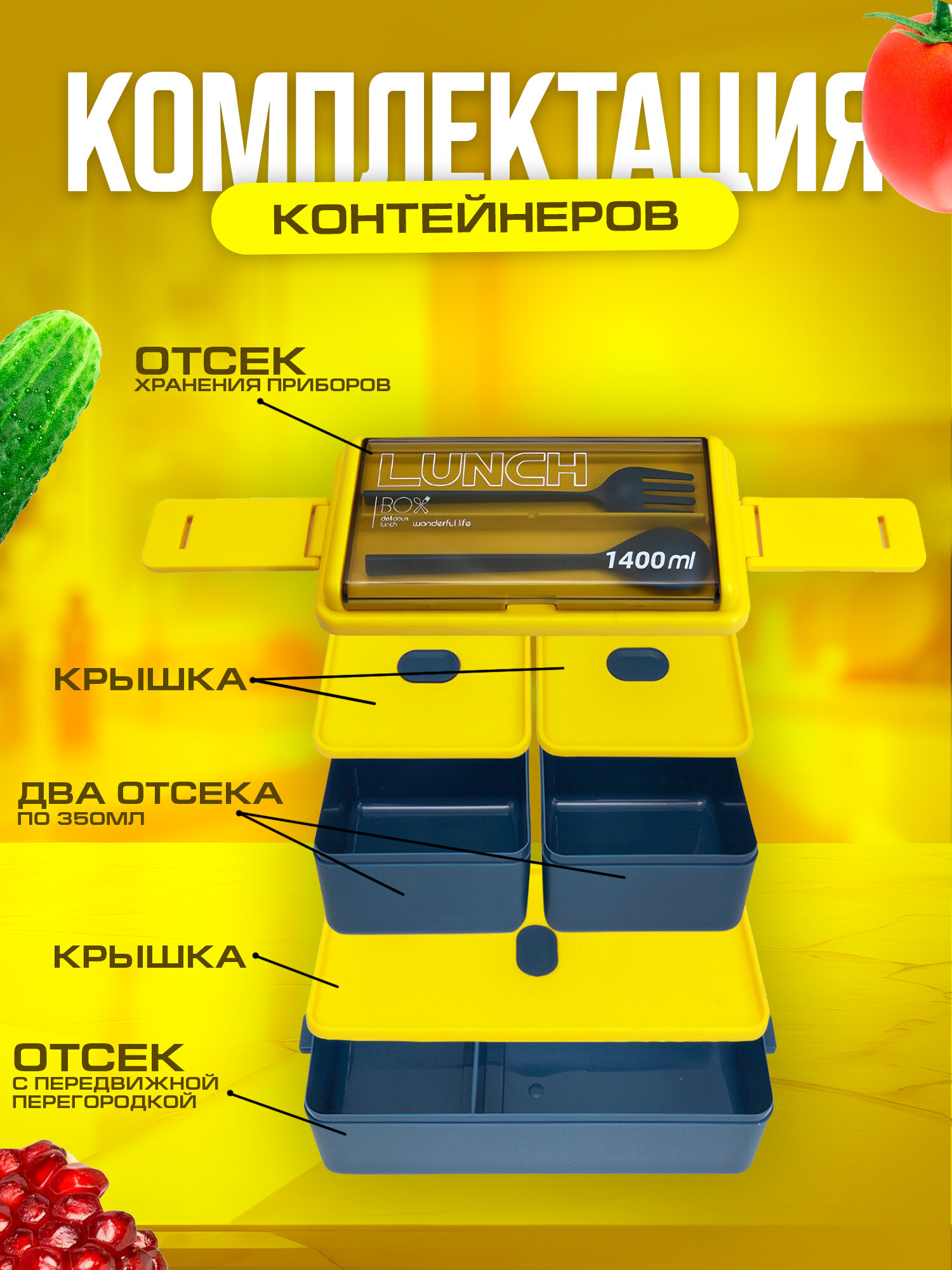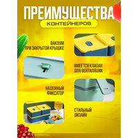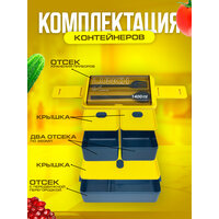 Герметичный пластиковый ланч-бокс с 3 отсеками 1400мл. (желто-синий)