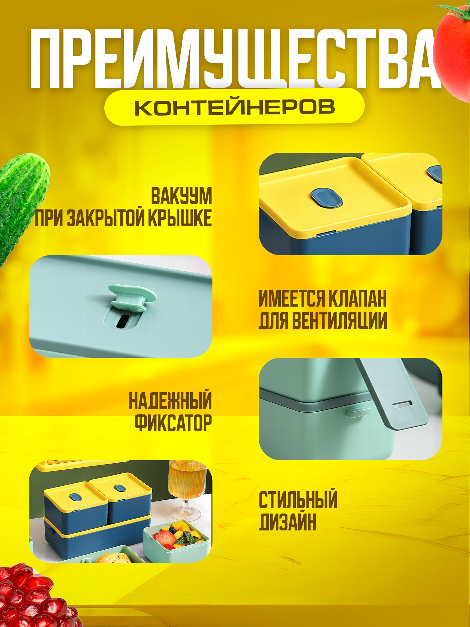 герметичный, крышка с клапаном, наличие секций, несколько ярусов