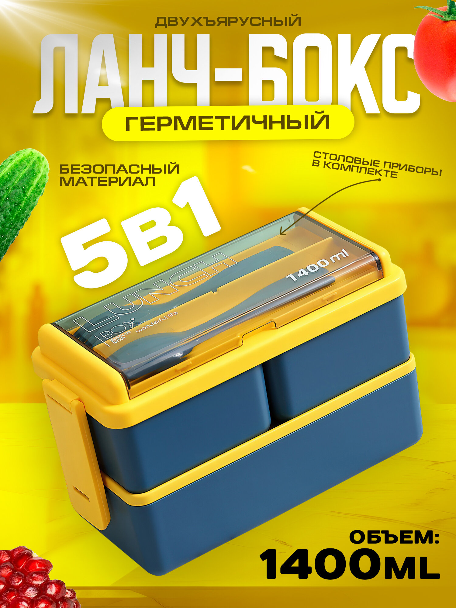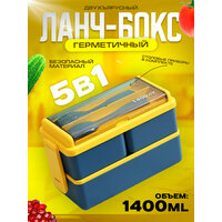 Герметичный пластиковый ланч-бокс с 3 отсеками 1400мл. (желто-синий): сравнение цен, характеристики, фото, актуальное наличие и цены.