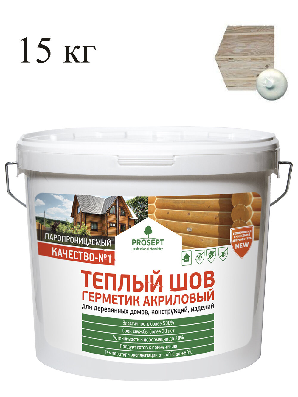 | Подробная комплектация | Герметик акриловый белый для швов для деревянных домов, конструкций, изделий PROSEPT, ф/п 600 мл |