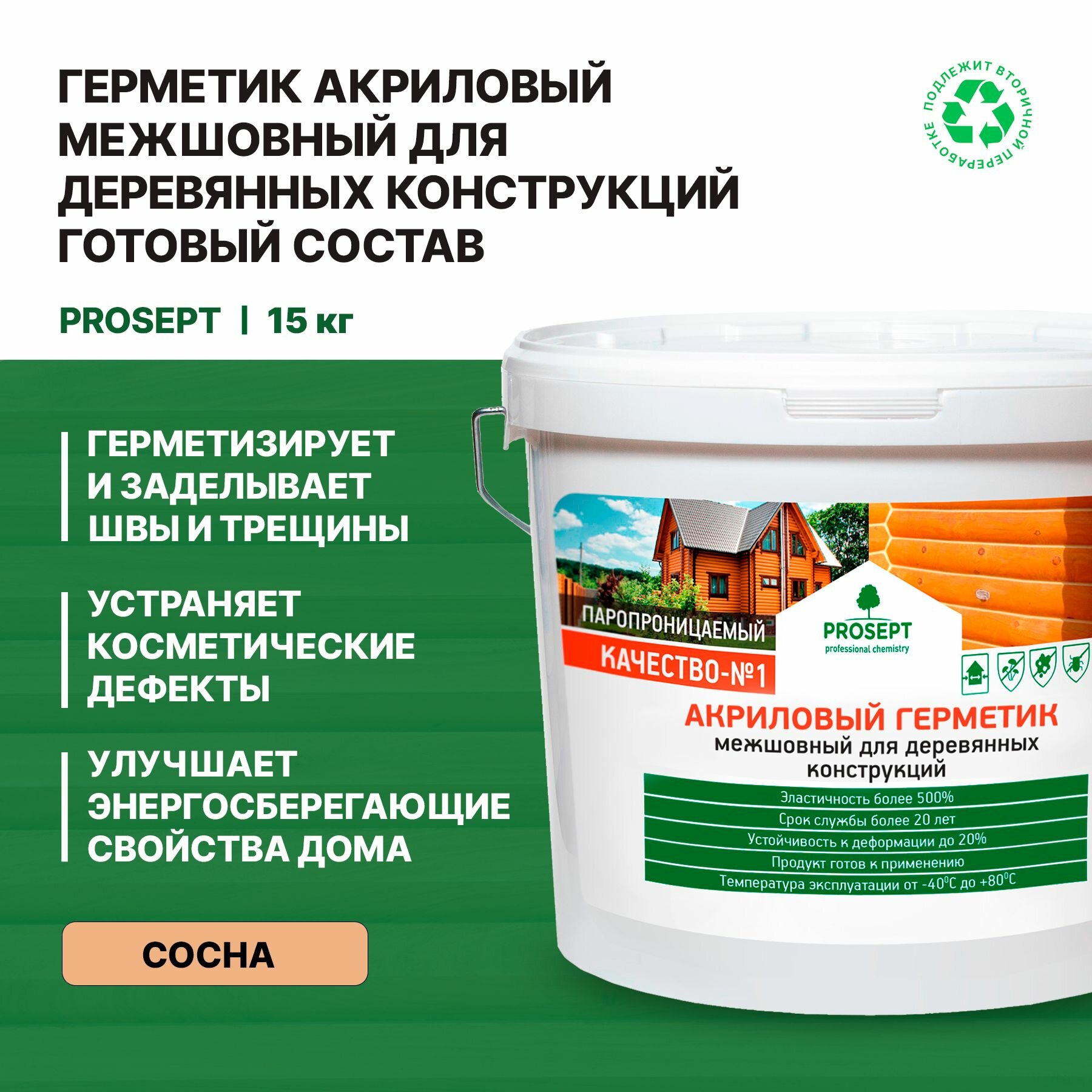 Герметик Prosept, акриловый, для дерева, морозостойкий, 15 кг: сравнение цен, характеристики, фото, актуальное наличие и цены.