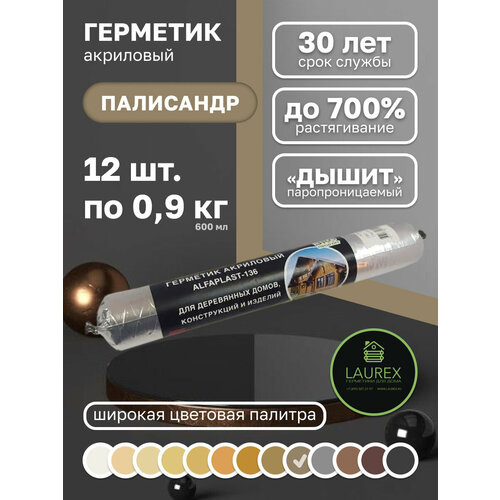Цветовая палитра акрилового герметика Альфапласт 136 магазина Лаурекс очень богатая, выпускается как герметик белый и серый, так и такие популярные цвета, как палисандр, дуб, венге и другие цвета герметика применяющегося для бруса и сруба
