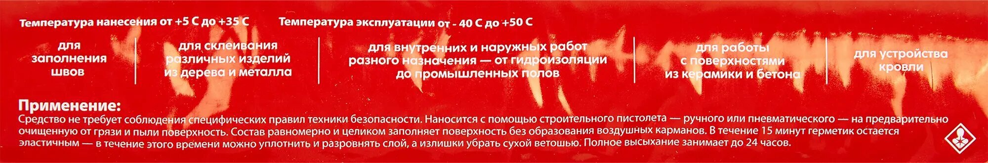 | Дополнительная информация | время затвердевания при +23°С и 65% относительной влажности: 3 мм/сут |