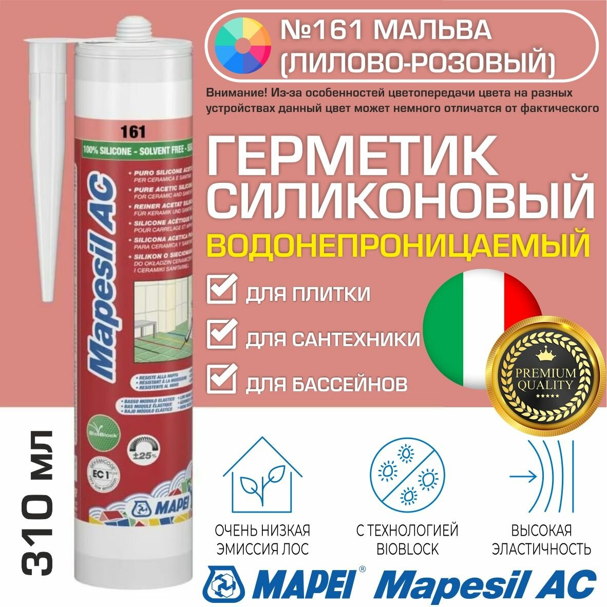 Купить Герметик Mapei Mapesil AC цвет №161 Мальва (Лилово-розовый) 310 мл — Силикон монтажный водонепроницаемый сантехнический герметизирующий для ванной, кухни, сантехники, плитки, с защитой от плесени с доставкой по всей России.