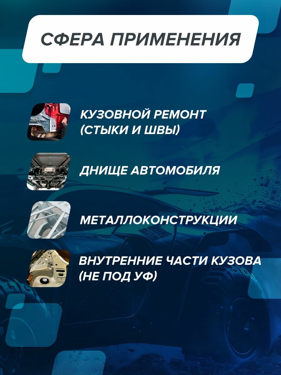 Не наносить на детали, подверженные прямому воздействию ультрафиолетового излучения.