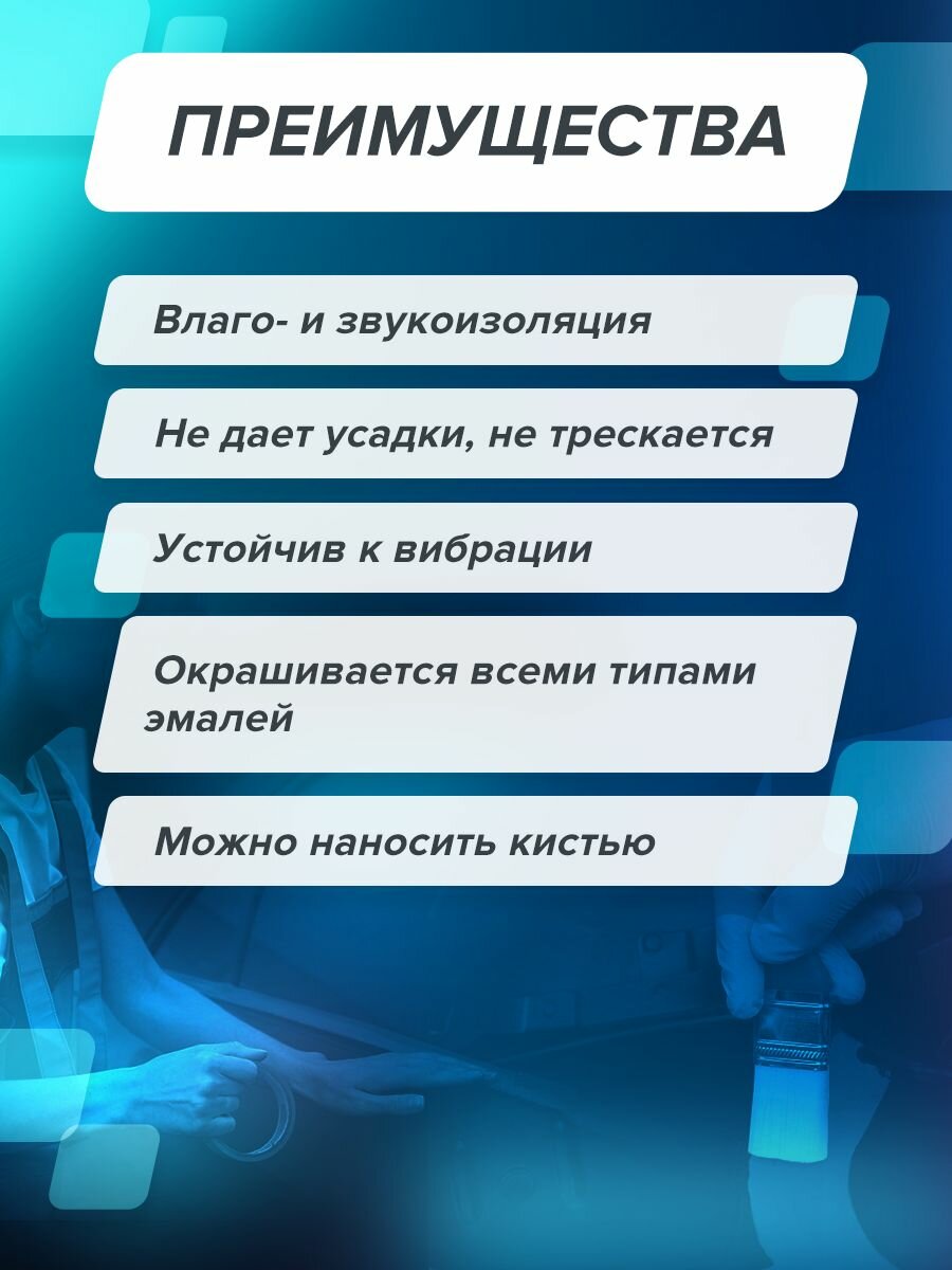 Сверхэластичный герметик на основе рафинированного каучука, разработанный специально для герметизации металлических поверхностей и соединений. Также подходит для внутренних частей автомобиля, которые не подвергаются прямому воздействию ультрафиолетового излучения. Легко наносится ручным или пневматическим пистолетом. Быстро высыхает в зависимости от толщины слоя, остается эластичным и безусадочным. После высыхания можно окрашивать всеми типами эмалей.