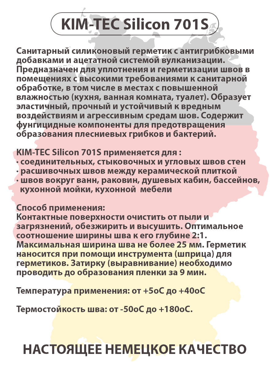 Герметик силиконовый санитарный 701S KIM TEC, белый, 3шт: сравнение цен, характеристики, фото, актуальное наличие и цены.