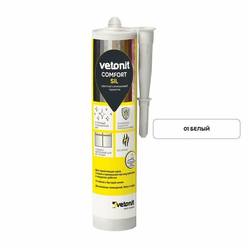 Vetonit comfort sil предназначен для герметизации угловых стыков плиточных облицовок (стена-стена, стена-пол), стыков, примыкающих к санитарно-техническому оборудованию (ванны, раковины, унитазы и др.), а также стыков напольных покрытий (плитка-паркет и др.) в сухих и влажных помещениях: ванных комнатах, душевых, кухнях, туалетах, саунах, банях и т. д. База на основе нейтрального силикона обеспечивает отсутствие запаха у герметика и неограниченную зону его применения. Герметик представлен 11 цветами, которые идеально сочетаются с цветами цементных затирок vetonit comfort spectrum. Герметик стойкий к УФ излучению, к моющим средствам, а также защищает от плесени и грибка. Назначение герметизация угловых и деформационных стыков плиточных облицовок в сухих помещениях и в помещениях с повышенной влажностью: ванных комнатах, душевых, кухнях, туалетах, саунах, банях, бассейнах и т. д; герметизация примыканий облицовки к санитарно-техническому оборудованию: ваннам, раковинам, душевым кабинам и т. п; герметизация швов в плавательных бассейнах; герметизация стыков водонагруженных элементов строительных конструкций; приклеивание подоконников, дверных порогов, лестничных ступеней, бортиков, плинтусов, дощатой обшивки, сборных элементов и др. Технические характеристики: Химическая основа - силикон нейтрального отверждения Внешний вид - однородная паста Тип отверждения - отверждение под воздействием влаги воздуха Противогрибковая защита - фунгицидная добавка — усиленный противогрибковый эффект Время образования поверхностной пленки, мин, не менее - 15–60 Скорость отверждения мм/сут, не менее - 2 Твердость по Шору А, усл. ед. - 15-30 Частичная нагрузка через, сут. - 1 Полная нагрузка через, сут. - 7 Температура нанесения, °C от +5 до +40 Температура эксплуатации,°C от 40 до +120 Подходящие основания: Керамогранит, керамика, стекло, в т. ч. стеклянная мозаика, эмалированные поверхности, фарфор, фаянс, нержавеющий и окрашенный металл, применяемый для изготовления сантехнических приборов (смесителей, душевых леек, выводов труб), пластик с декоративной поверхностью (краска, металлическое напыление) и другие типы материалов, применимые для изготовления плитки и сан тех ники. Подготовка основания: Поверхность, на которую наносят герметик, должна быть сухой и чистой. На ней не должно быть масляных пятен, смазки, пыли, грязи, осыпающихся частиц слоя цементного молочка, остатков ранее примененного герметизирующего материала. Загрязненные поверхности следует обезжирить растворителем или произвести очистку меха ни чески щеткой или пескоструйной обработкой. Рекомендуется перед выполнением работ сделать тестовое нанесение на небольшой участок поверхности для проверки адгезии к основанию и готовности самого основания. Необходимо произвести пробное нанесение в случае использования плитки с фактурной, неглазурованной, матовой или каменной поверхностью для исключения окрашивания пигментами, содержащимися в герметике, и сложностей с его удалением. Убрать пигмент с пористой плитки можно с помощью уайт-спирита Рекомендации: Все работы по герметизации следует проводить при температуре окружающей среды от +5 до +40 °С. При герметизации плиточных швов герметик следует наносить в стык по малярному скотчу для более ровных краев шва. Скотч при этом наносится строго по краю плитки. Толщина