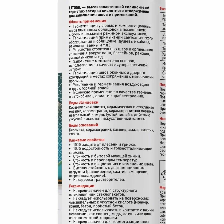 Герметик-затирка LITOKOL LITOSIL, силиконовый, для наружных и внутренних работ, 280мл