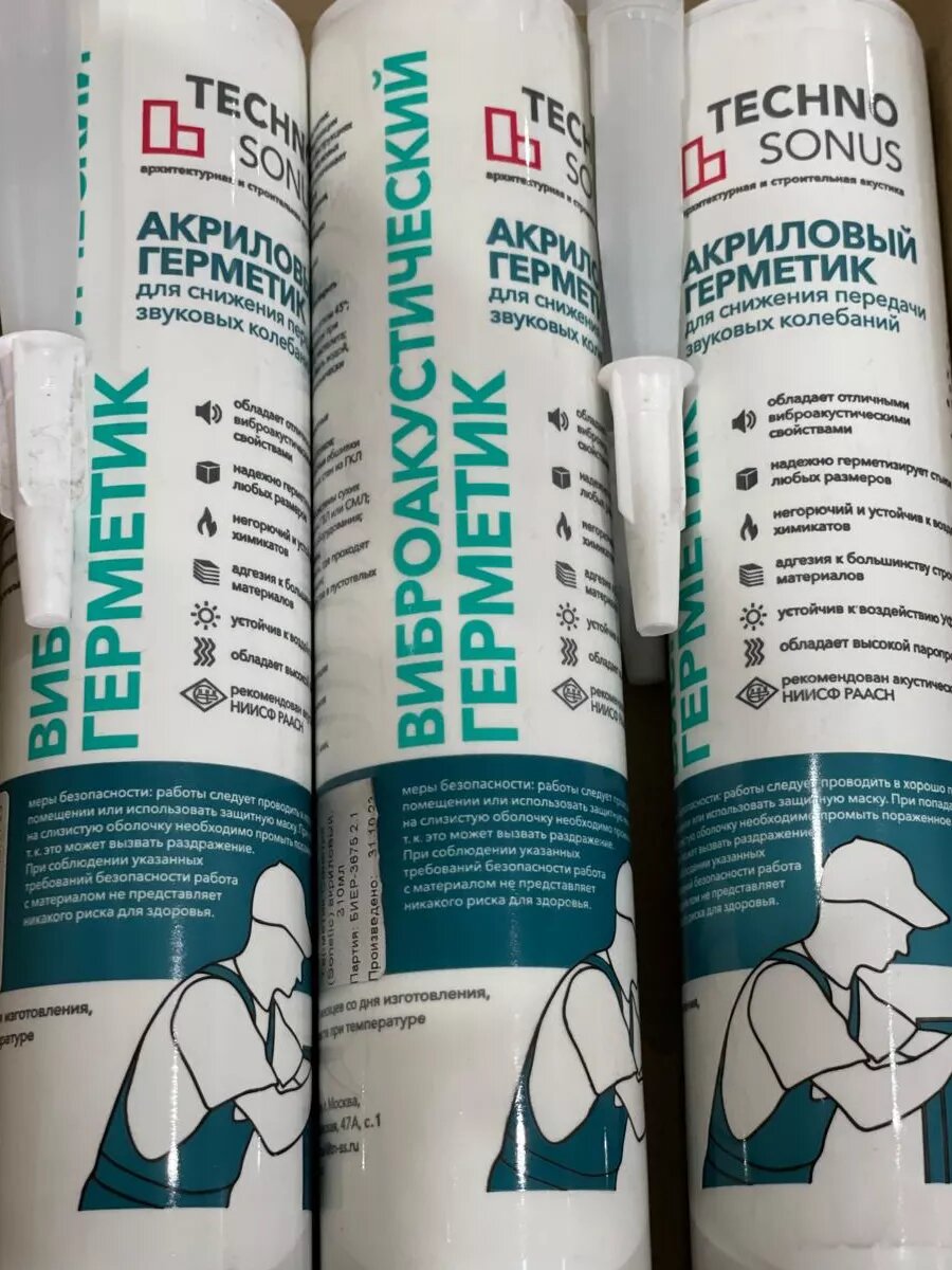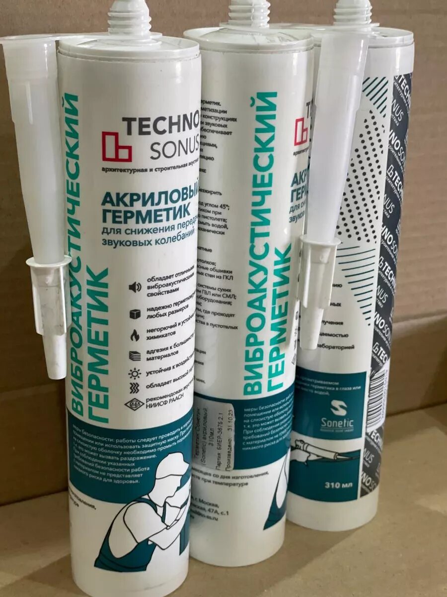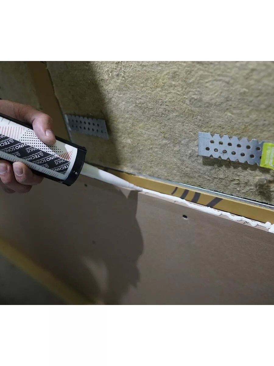 Герметик TechnoSonus служит для снижения вибрации, передающейся по твердым элементам в звукоизоляционных системах, тем самым повышая собственные звукоизолирующие свойства всей конструкции.