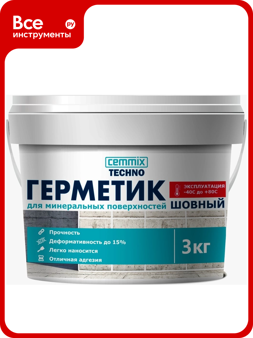 Акриловый герметик для минеральных поверхностей CEMMIX (серый; 3 кг) 84735735: сравнение цен, характеристики, фото, актуальное наличие и цены.