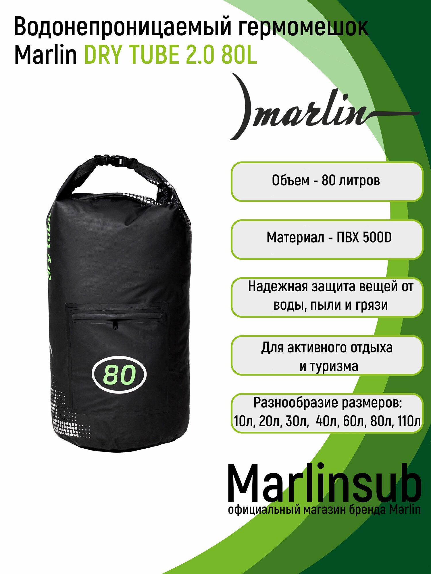 Водонепроницаемый гермомешок ПВХ Marlin DRY TUBE 2.0 80 L Black: сравнение цен, характеристики, фото, актуальное наличие и цены.