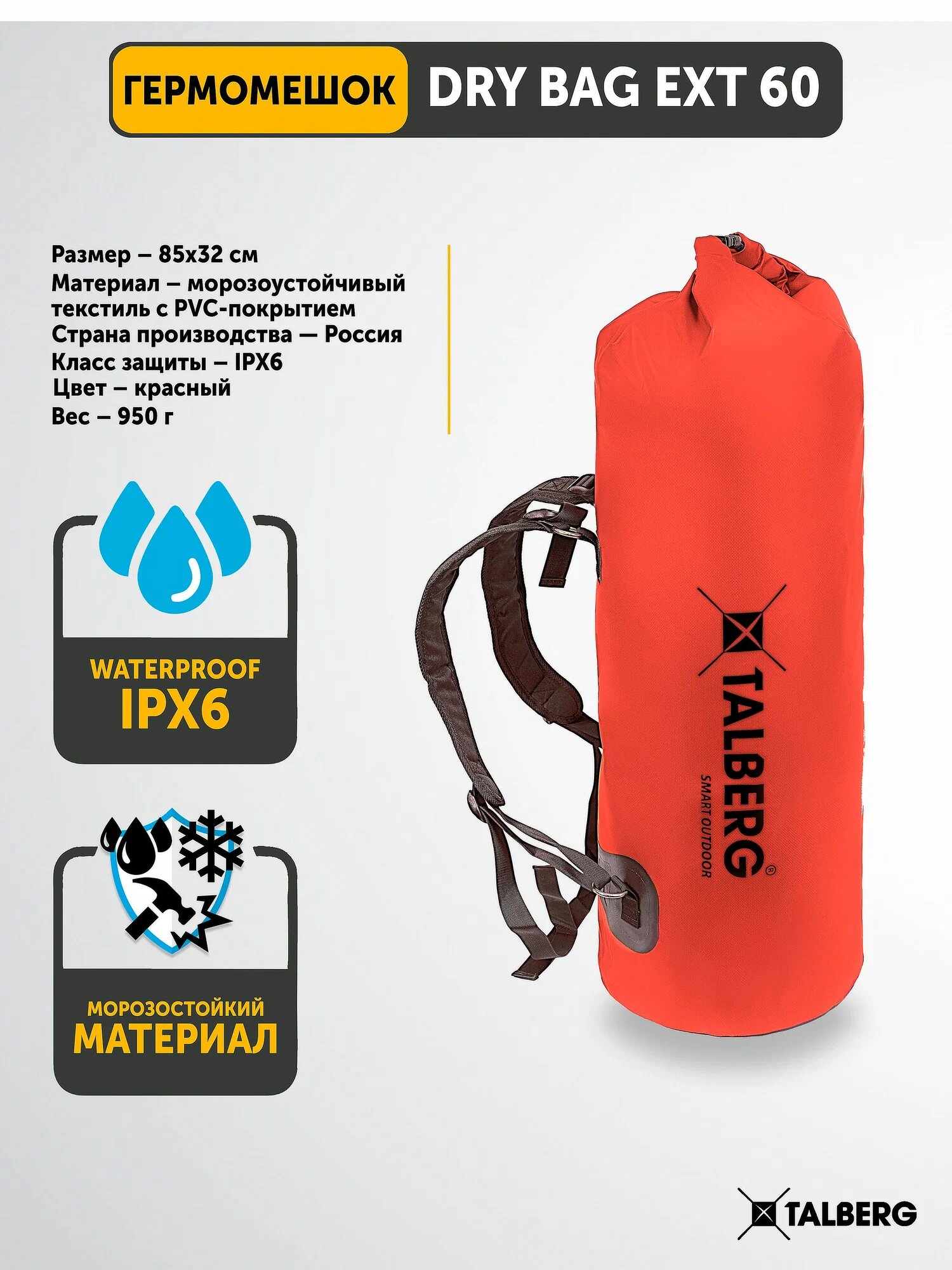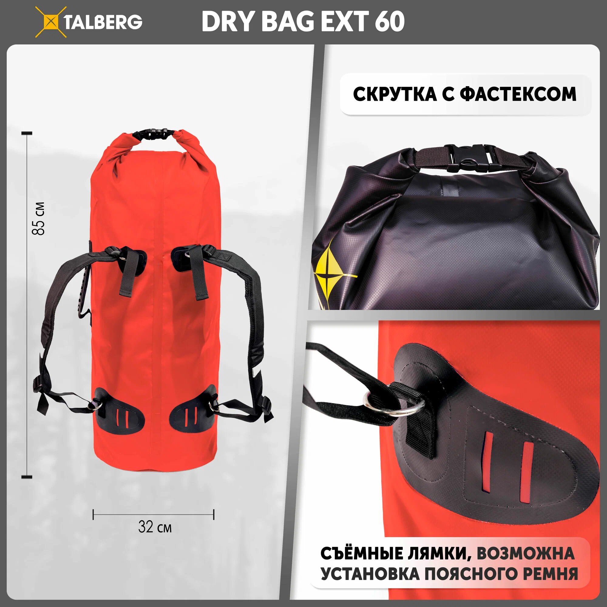 Гермомешок туристический водонепроницаемый Talberg DRY BAG EXT 60 л, красный, с лямками: сравнение цен, характеристики, фото, актуальное наличие и цены.
