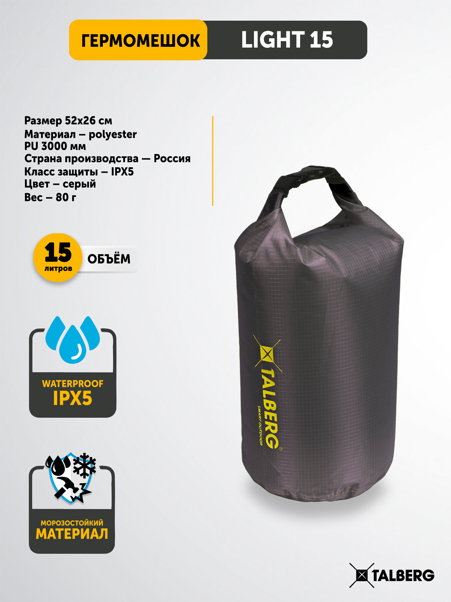 Гермомешок туристический водонепроницаемый Talberg LIGHT 15, серый: сравнение цен, характеристики, фото, актуальное наличие и цены.