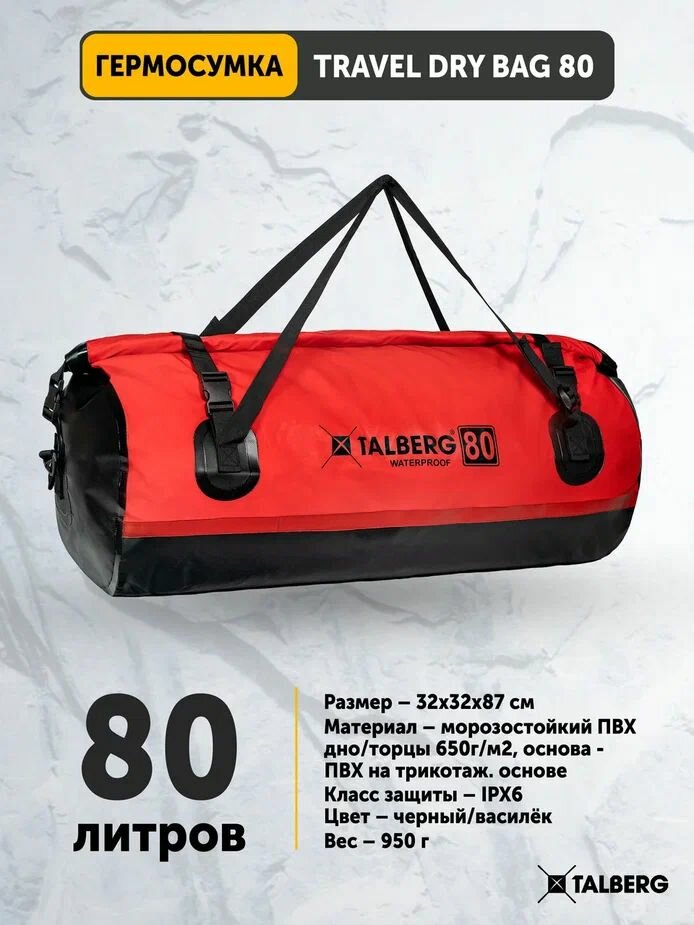 Гермосумка Travel Dry Bag изготовлена снизу и по бокам из плотного морозоустойчивого литого PVC, а сверху – мягкая морозоустойчивая PVC ткань на трикотажной основе. Сумка оснащена ручками для переноски и регулируемой наплечной лямкой.