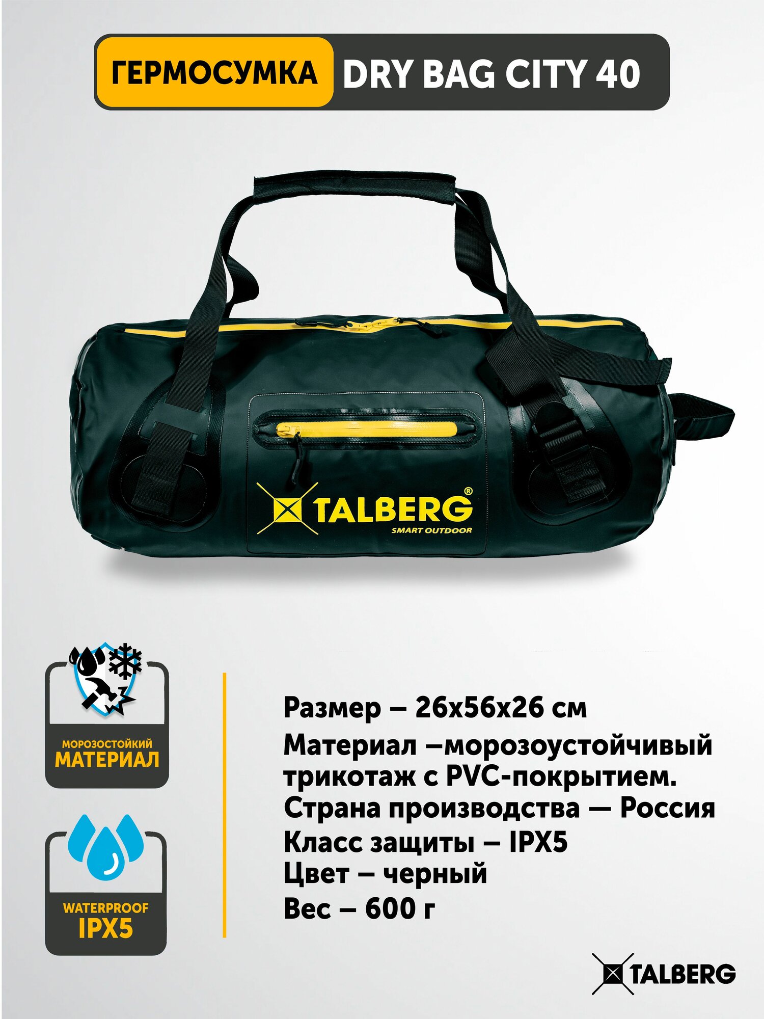 Гермосумка туристическая водонепроницаемая Talberg DRY BAG CITY 40 л, черный, с ремнем: сравнение цен, характеристики, фото, актуальное наличие и цены.