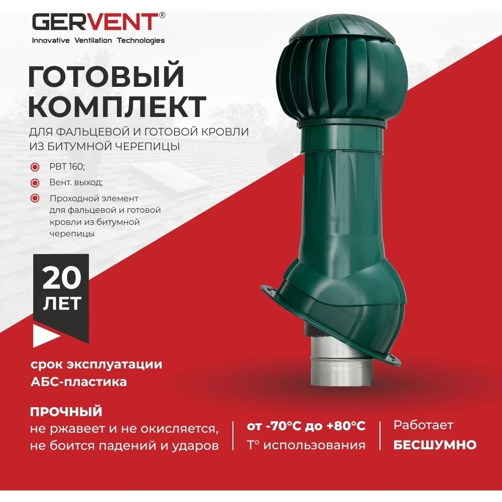 Купить Gervent Комплект вентиляции для фальцевой и готовой кровли из битумной черепицы, зеленый комбит/зел с доставкой по всей России.