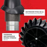 Главная особенность данной вентиляционной системы в том, что ротационный дефлектор всегда будет вращаться только в одну сторону, вне зависимости от силы и направления ветра. И не давая осадкам попадать в канал вентиляции. Все это позволит создать в вентиляционной шахте вакуум, который, в свою очередь, сделает движение воздуха в трубе более интенсивным, не образуя при этом обратную тягу.